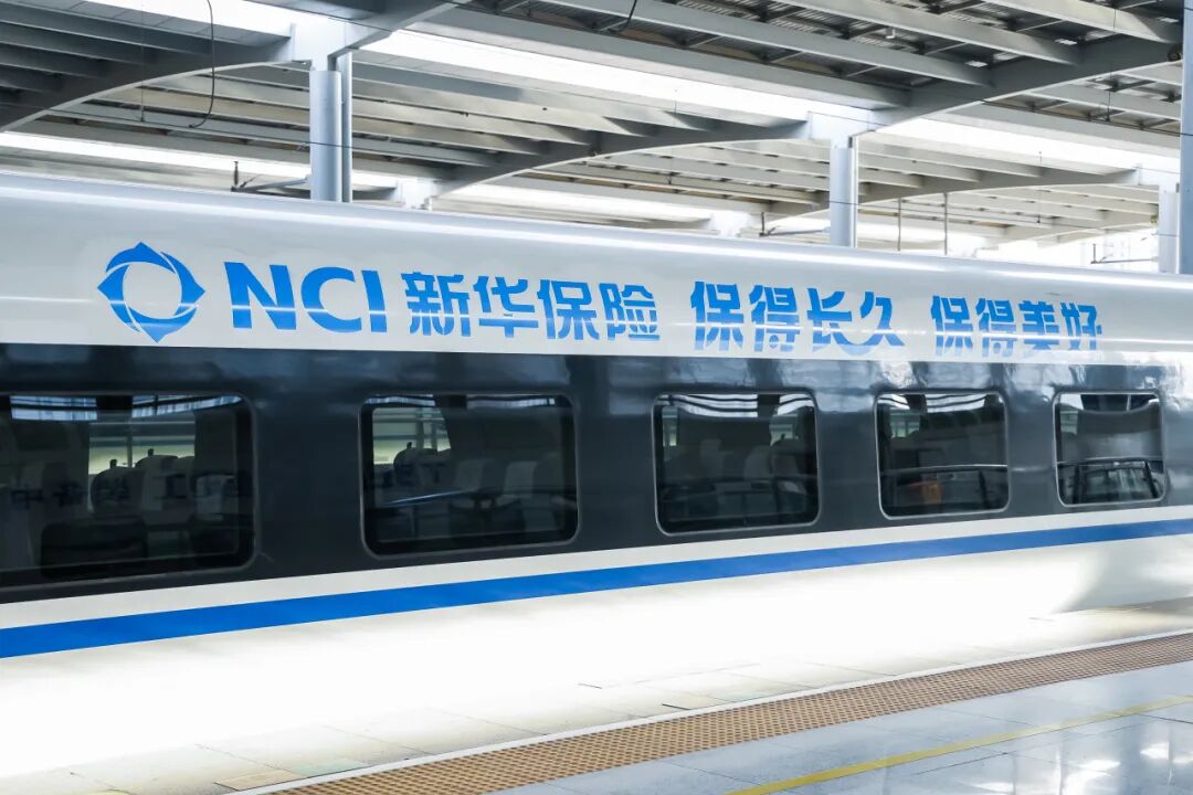 在现场嘉宾的共同见证下,新华保险冠名品牌列车正式揭幕。车身以白色为底、蓝色为饰,“保得长久保得美好”的品牌口号醒目耀眼,成为跃动在站台上的亮丽风景线,彰显着温暖与信赖的力量。