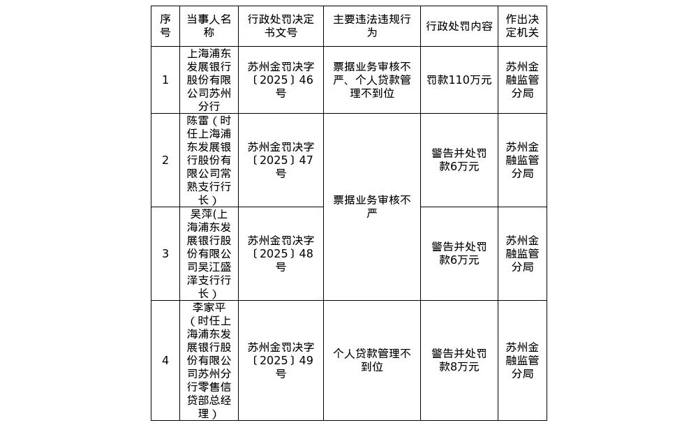 1月5日,国家金融监督管理总局苏州监管分局发布了罚单,剑指浦发银行苏州分行及其相关责任人。