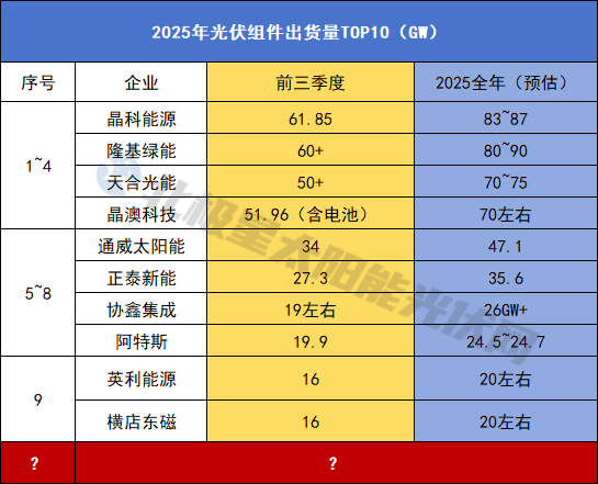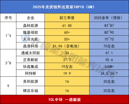 搅局!2025年光伏组件出货量TOP10