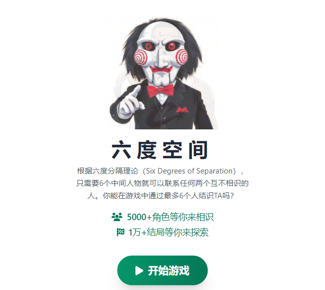 去年4月初,他曾利用业余时间做出了AI文字游戏《六度空间》初步验证了他的“递推式AI游戏”理念。这款游戏里,玩家将通过6轮剧情中认识的6个人,最终达到认识名人的游戏目标。