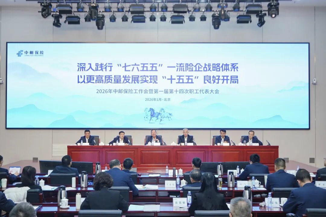 1月19日-20日,中邮保险召开2026年工作会议暨第一届第十四次职工代表大会。会议以习近平新时代中国特色社会主义思想为指导,全面贯彻党的二十大和二十届历次全会精神,深入落实中央经济工作会议、中央金融工作会议部署,第一时间贯彻落实中国邮政集团有限公司工作会议安排,总结去年工作,研判内外形势,安排今年任务,提出深入践行“七六五五”一流险企战略体系,以更高质量发展实现“十五五”良好开局。中国邮政集团有限公司党组成员、副总经理温少祺出席会议并讲话,中邮保险董事长韩广岳出席会议,党委副书记、总经理李学军作工作报告。