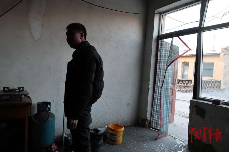 1月20日,内蒙古包头,九原区尔甲亥村,记者观察到村内多处房屋的玻璃被震碎,有些房屋无人居住,有些玻璃被村民用木板、铁架等物品“修补”空隙。中青报·中青网记者石佳/摄