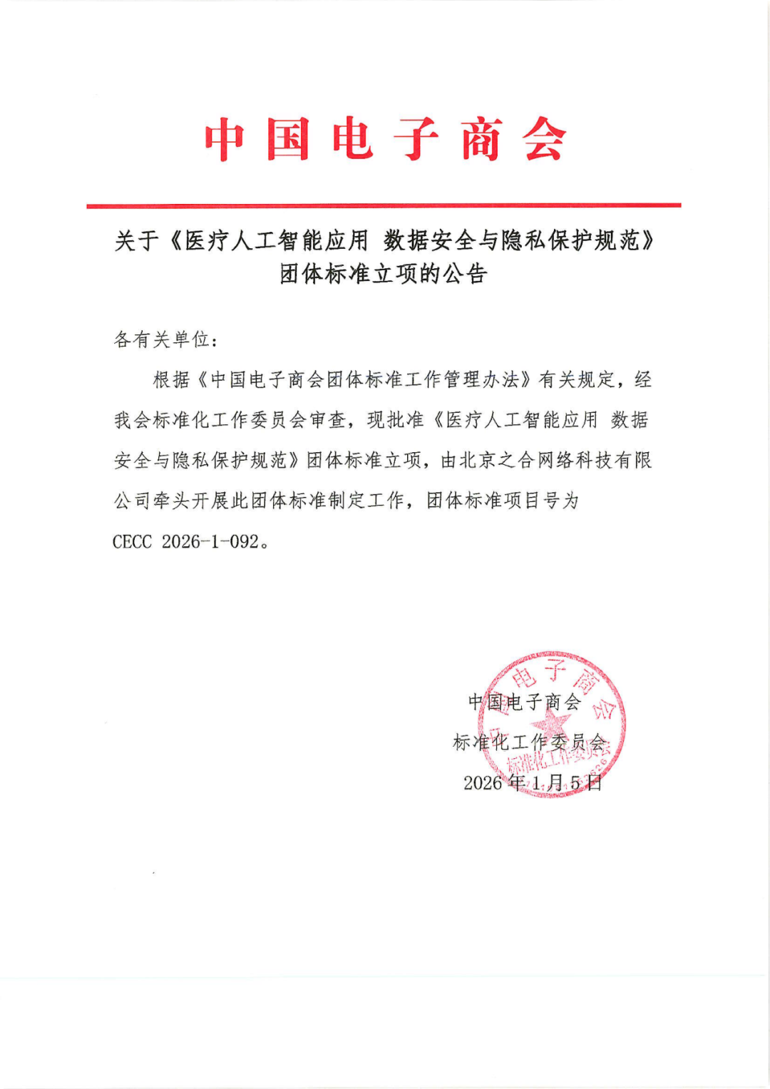 为此,由中国电子商会归口管理、智合标准中心(北京之合网络科技有限公司)组织编制,国家药品监督管理局信息中心、蚂蚁科技集团股份有限公司、中国质量认证中心联合起草的全国首部聚焦医疗AI数据安全团体标准《医疗人工智能应用数据安全与隐私保护规范》应运而生。