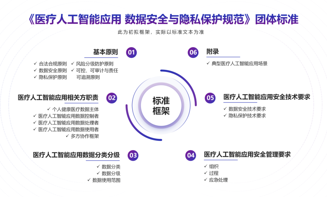 本标准直面AI模型开发、训练、部署全流程中的动态化数据风险,系统构建了覆盖数据分类分级、全生命周期安全管理、隐私保护技术应用及多方协作责任界定的标准化操作框架,旨在为医疗机构、AI技术企业、第三方服务商及监管机构提供清晰、一致的操作指引,推动产业在安全合规的轨道上健康发展。
