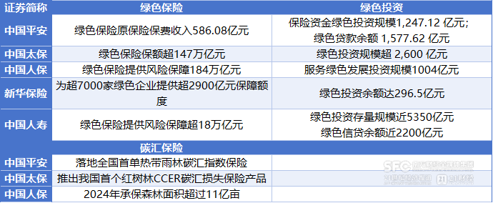 值得注意的是,有3家险企披露了碳汇保险的实践。中国平安在报告期内落地全国首单热带雨林碳汇指数保险;中国太保推出我国首个红树林CCER碳汇损失保险产品;中国人保2024年承保森林面积超过11亿亩。