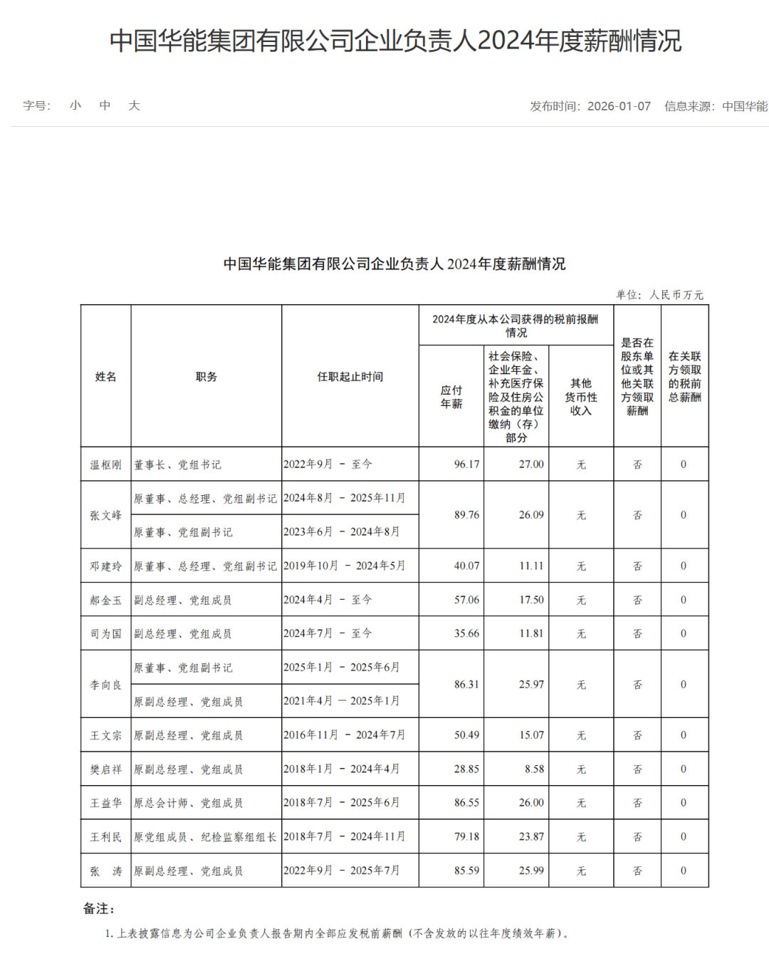 近日,多家能源央企官方网站披露2024年度企业负责人薪酬情况。