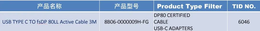 USB-C to fsDP 80LL Active Cable 3m —技术规格
