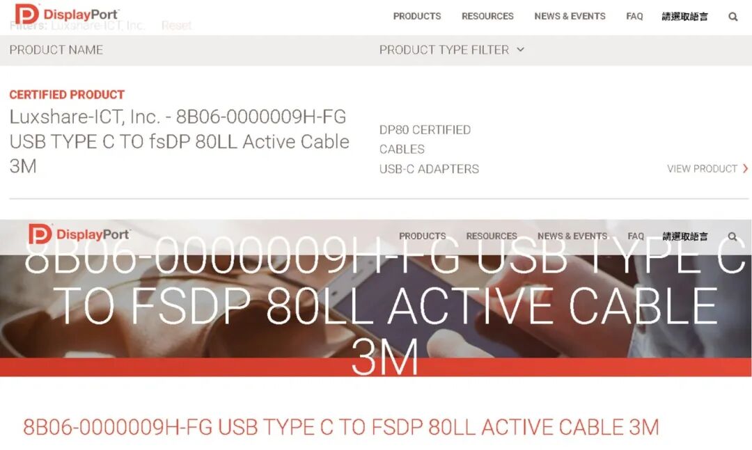 立讯精密获 VESA C TO DP80LL 3m 认证,全面完善DisplayPort 2.1高阶产品矩阵