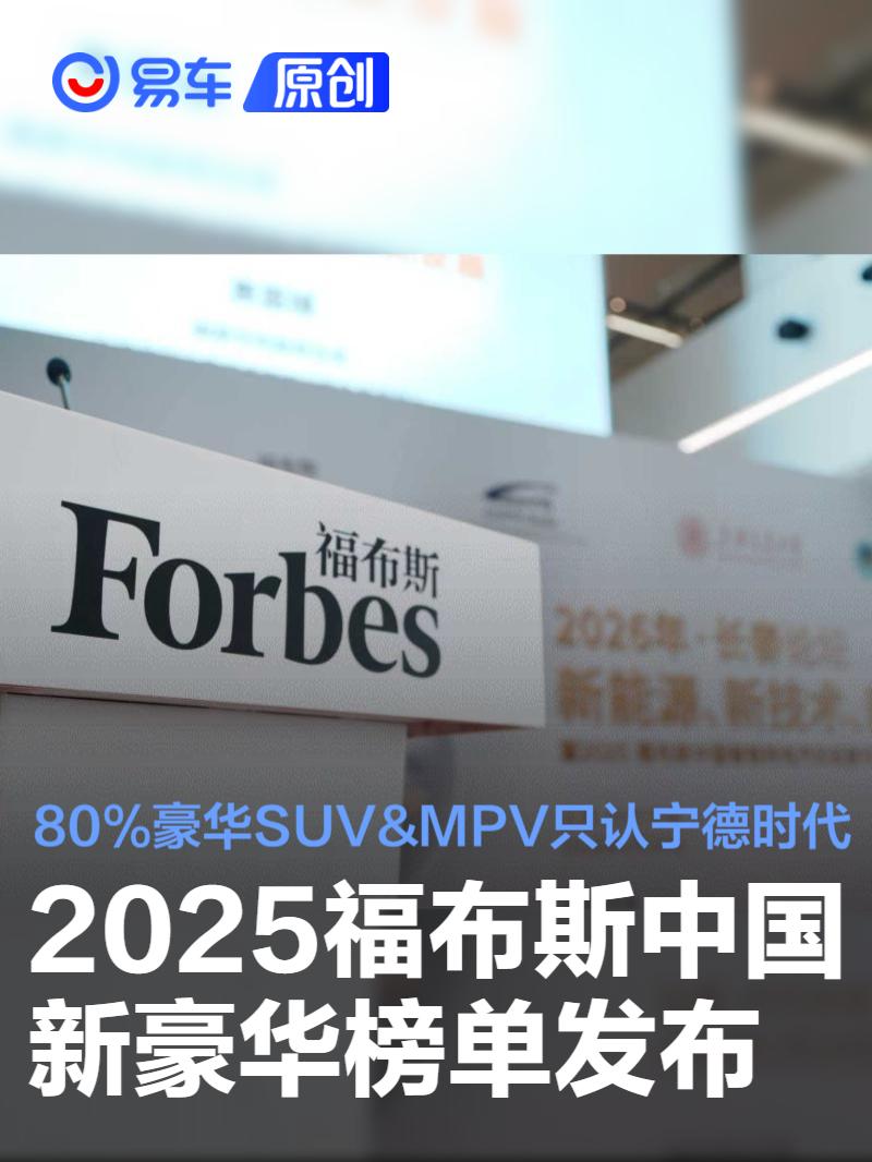 2025福布斯中国新豪华榜单发布 80%豪华SUV&MPV只认宁德时代