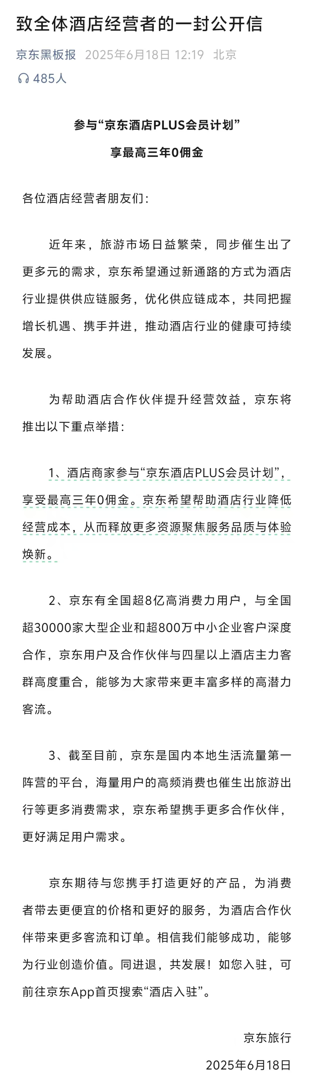 京东以供应链赋能为核心的打法,既是对自身优势的最大化利用,也为行业发展提供了新的思路:在存量竞争时代,唯有深耕核心能力、实现价值共生,才能在酒旅赛道走得更远、更稳。