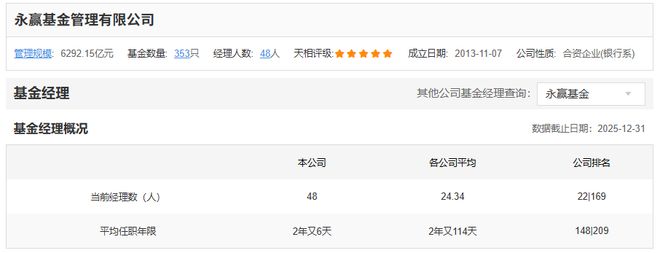 老将出走,永赢基金的策略是不断招“新人”。天天基金网数据显示,永赢基金当前基金经理数为48人,平均任职年限2年又6天,低于行业平均的2年又114天。