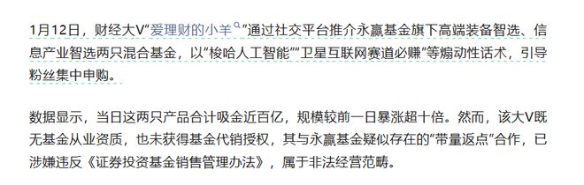 这并非孤例。公开报道显示,财经大V“爱理财的小羊”还涉嫌带货德邦基金旗下产品,该基金在头部互联网平台被“抢购一空”,单渠道成交额或超百亿元。