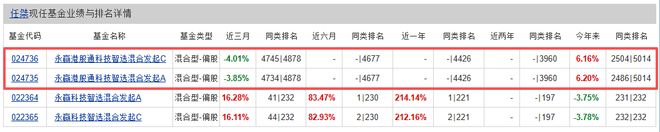 其中,永赢港股通科技智选混合发起A单位净值为1.0156,近3月回报为-3.85%,同类排名靠后。永赢港股通科技智选混合发起C单位净值为1.0127,近3月回报为-4.01%,同类排名同样靠后。