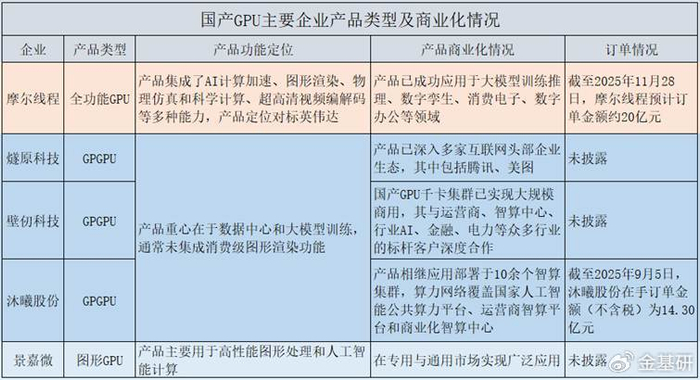 总的来说,以摩尔线程、沐曦股份、燧原科技、壁仞科技为代表的国产GPU企业,依托清晰的技术路线与差异化的产品矩阵,在手订单饱满、应用场景广泛、生态合作深入,标志着国产GPU正式迈入规模化落地与商业兑现的新阶段。