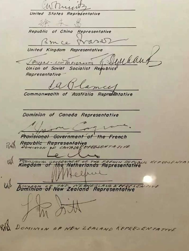 如果你不认为世界是个草台班子,那么请一定记住,在签署日本投降文件这件严肃的事情上,加拿大代表斯科格雷夫把自己的名字写在了法国代表一栏: