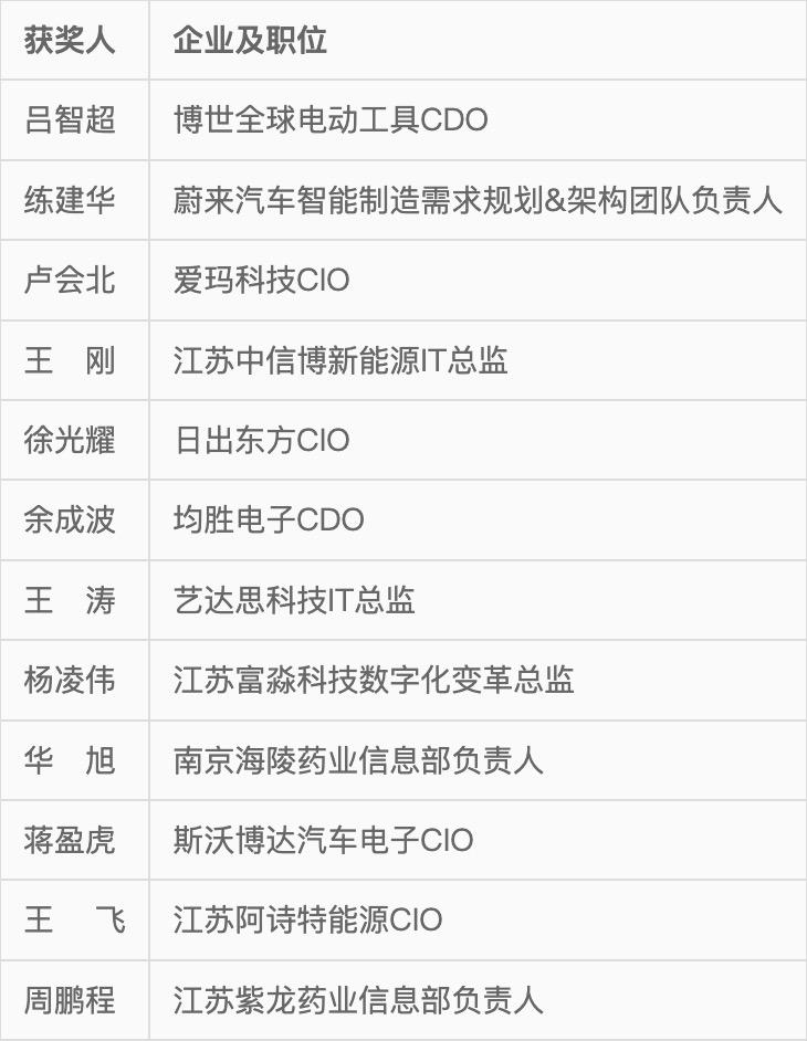 来自蔚来汽车、Bosch Global Tools、江苏中信博、斯沃博达、艺达思科技、日出东方、无锡星驱动力科技、江苏阿诗特能源、润阳新能源共9家企业,凭借在AI预防、视觉、产供销一体化、营销、质量监控及数据等领域取得的实践成果,获得了“2025年度智造创新标杆案例”。