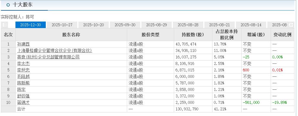 在过去几年时间里,经过司法拍卖、减持、大宗交易等之后,截止2025年12月30日,英奇(杭州)企业总部管理有限公司在达刚控股中的持股比例下降至5.05%。