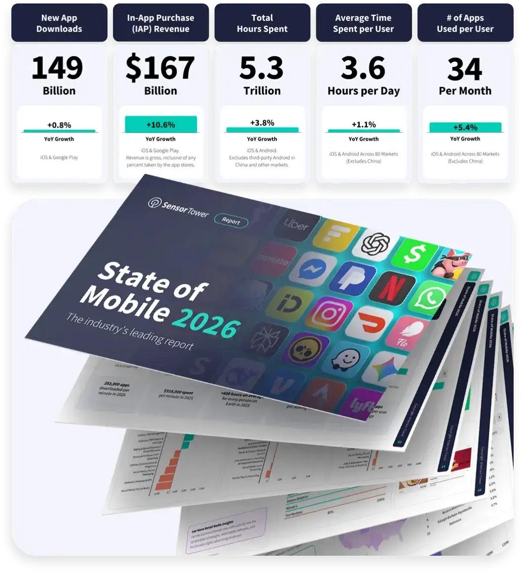 报告基于对苹果 App Store 及谷歌 Play Store 长达十余年的追踪,指出 2025 年全球移动市场格局发生根本性变化,认为移动经济正从“娱乐主导”向“服务与效能主导”转型。