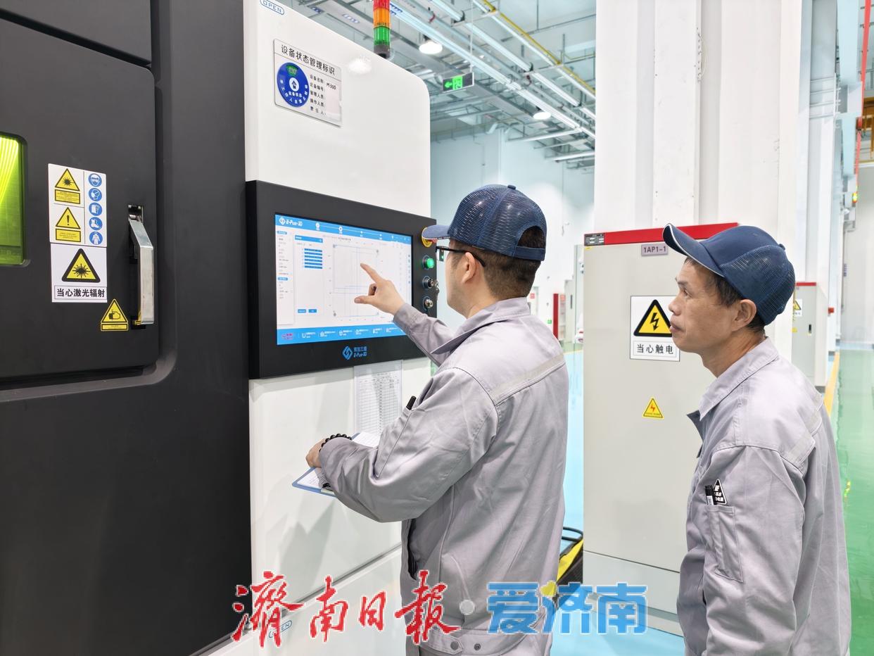 生产提效的同时,产品质量也更加可靠。“3D打印生产的零件尺寸精度和表面粗糙度远超传统机械加工水平。”济钢四新产业发展(山东)有限公司增材制造高级工程师尚玉民介绍。同时,贵重合金材料利用率也大幅提升,因此单部件综合成本降低40%-60%,且通过全流程质控体系,零件缺陷率严格控制在0.3%以下。