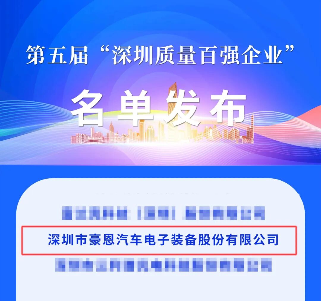 喜讯!豪恩汽电荣登第五届“深圳质量百强企业”榜单