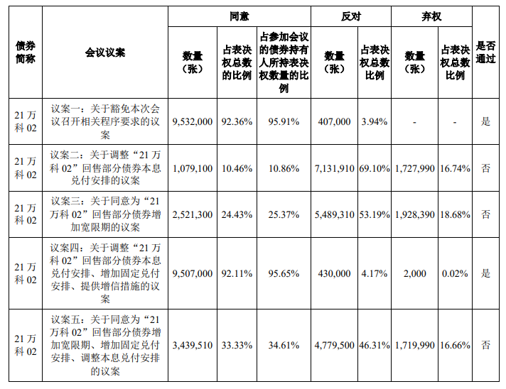 业内预计,随着“21万科02”方案高票通过,上述两只债券40%首付款方案通过几无悬念。