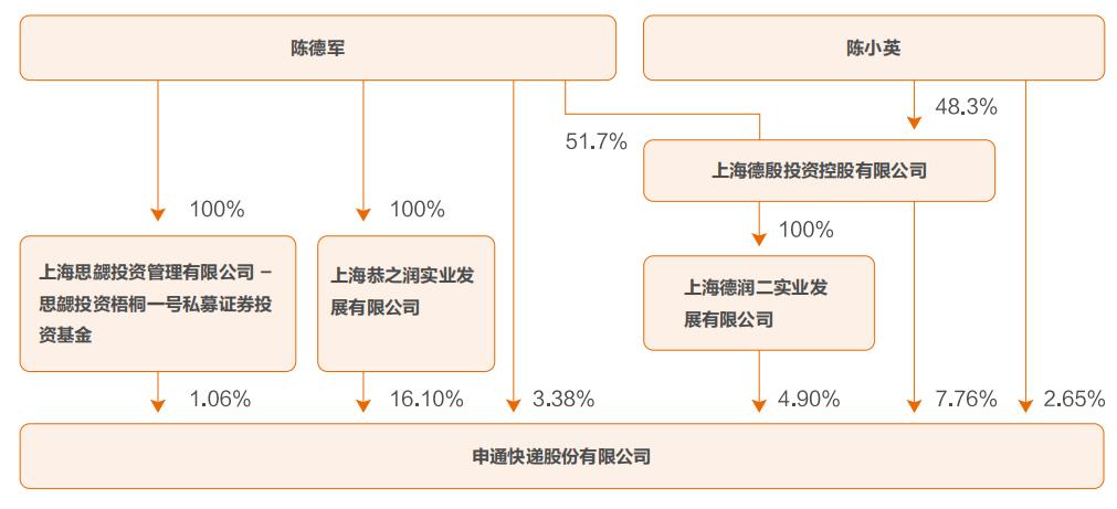 申通快递与实际控制人之间的产权及控制关系图。(图源申通快递年报)