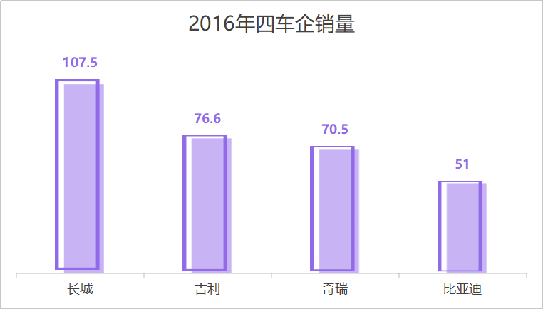 长城汽车依旧有自己的独特之处,销量相对低但均价较高,约17万;坦克、皮卡品牌用户忠诚度较高;长城最著名的就是产品定位,在当时国产品牌发家时,一直是得轿车者得天下,但长城偏偏死磕SUV和皮卡,随后双双成为行业领跑者。