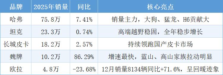 2025年各个车企销量数据出炉,长城汽车勉强进入前十;且销量被比亚迪、吉利、奇瑞远远甩开。