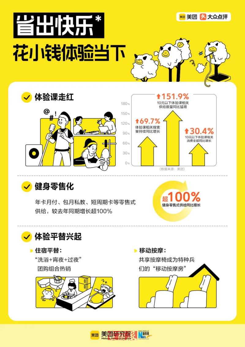 住宿过夜成了洗浴中心的新选项。2025年,“洗浴+宵夜+过夜”的团购组合正成为越来越多年轻人的选择。“平替”相关搜索量同比增长26.4%,含“平替”关键词的到店消费商品供给同比增长97.8%。在机场、火车站,共享按摩椅成为“特种兵们”的“移动按摩房”,2025年首次上新智能按摩空间品牌“乐摩吧”,上线单日便突破17万单。