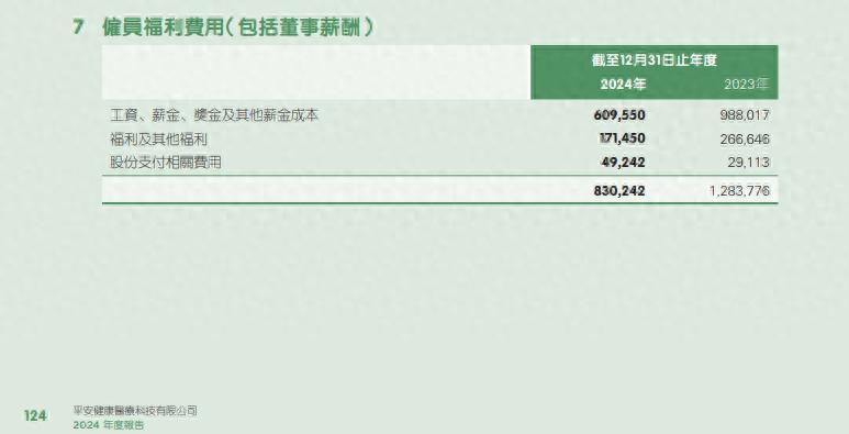 费用下降的背后,是裁员与薪酬下调。员工数量从2020年的4226人减至2024年的1563人,四年间减员比例超63%。即便有幸留存下来的员工,人均薪酬也同步缩水:平安好医生2023年的员工数量1753人,工资、薪金、奖金及其他薪金成本为9.88亿元,人均56.36万元;到了2024年,工资、薪金、奖金及其他薪金成本为6.1亿元,人均39万元,同比下降30.8%。