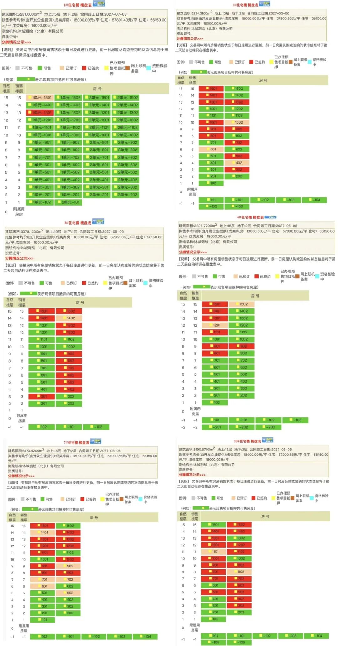 最北边的1#,因为高压线因素,网签表现不佳,总供应60套(其中2套复式),目前仅有1套网签和1套被预订。