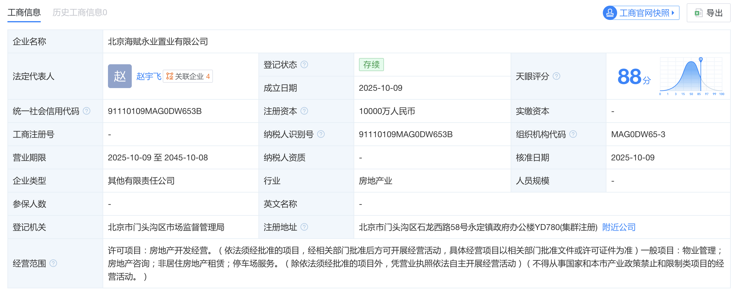 门头沟四道桥项目公司浮出,电建地产控股80%、赵宇飞出任董事长