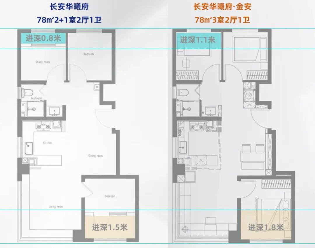 在产品上,78㎡户型直接抄了一期作业,同时在南北赠送上均有所增加,延展空间10.6㎡,实际使用率91%。