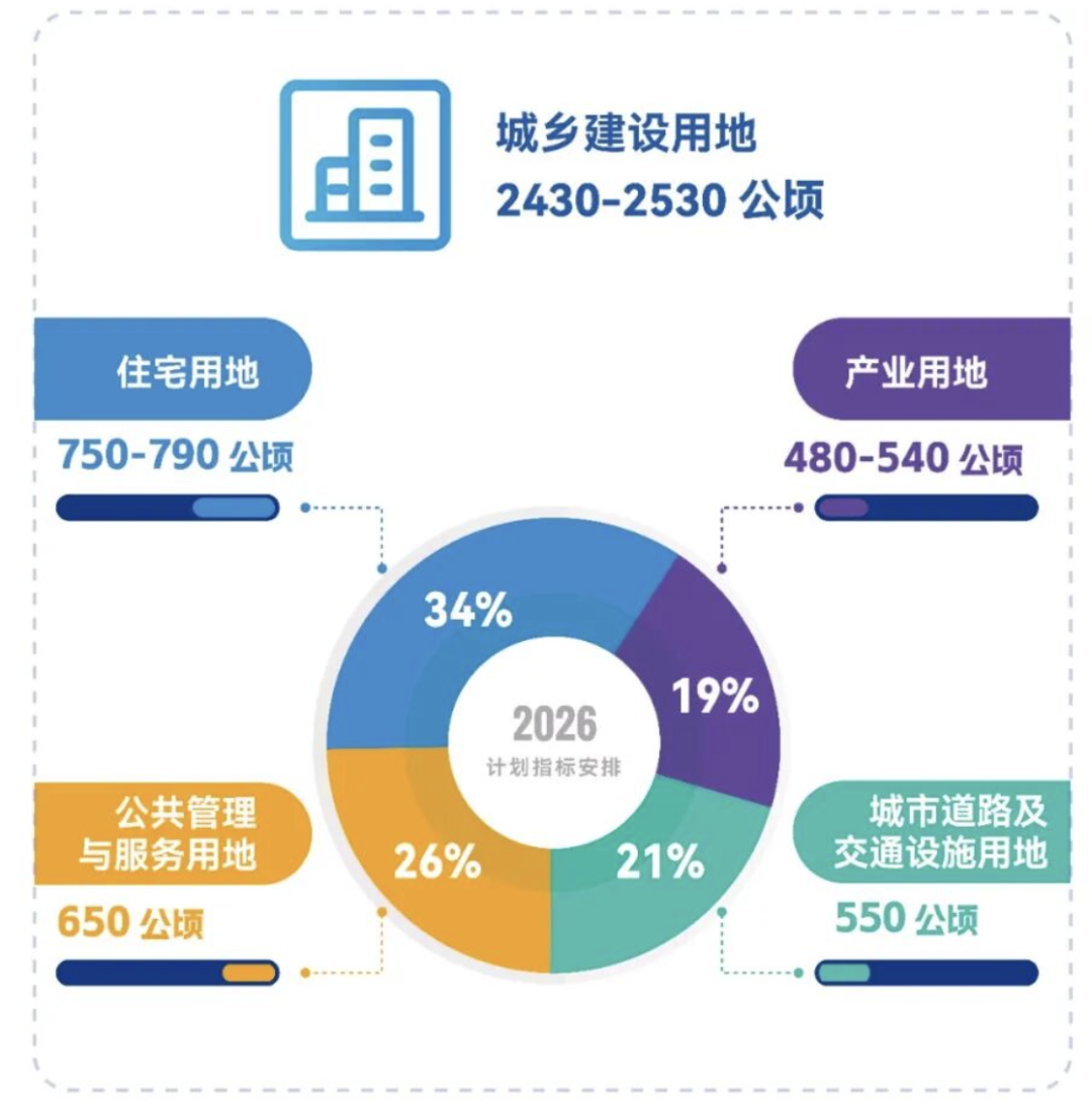 减量提质,强化城市规划的管控和引导作用。2026年度全市安排城乡建设用地净减量任务500公顷,较2025年减少40公顷。