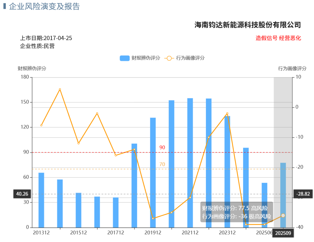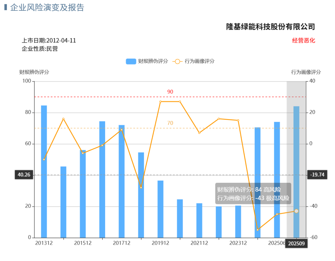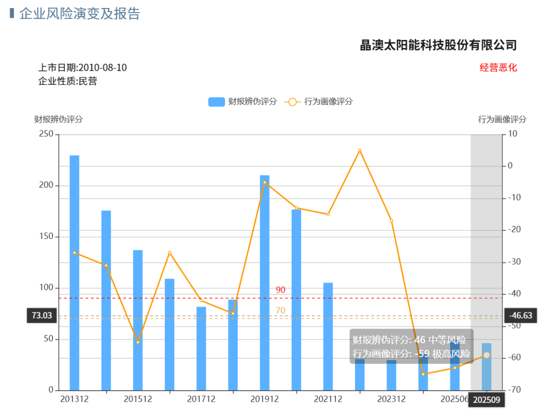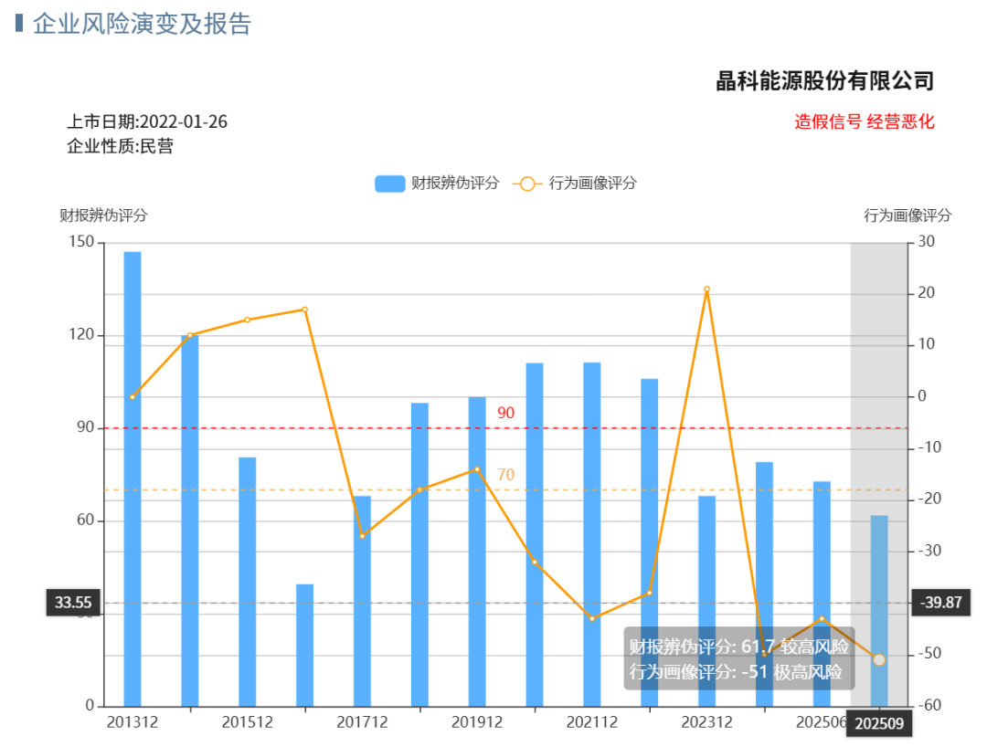 通威股份虽然近期预警加重,但历史问题尚可;晶澳科技近5年造假信号降低;两家不会成为最早爆雷那批。