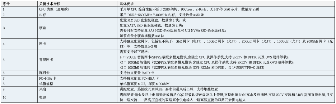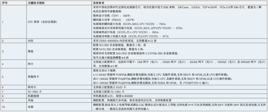 投标产品应符合中国电信相关技术要求,并满足以下关键技术指标。