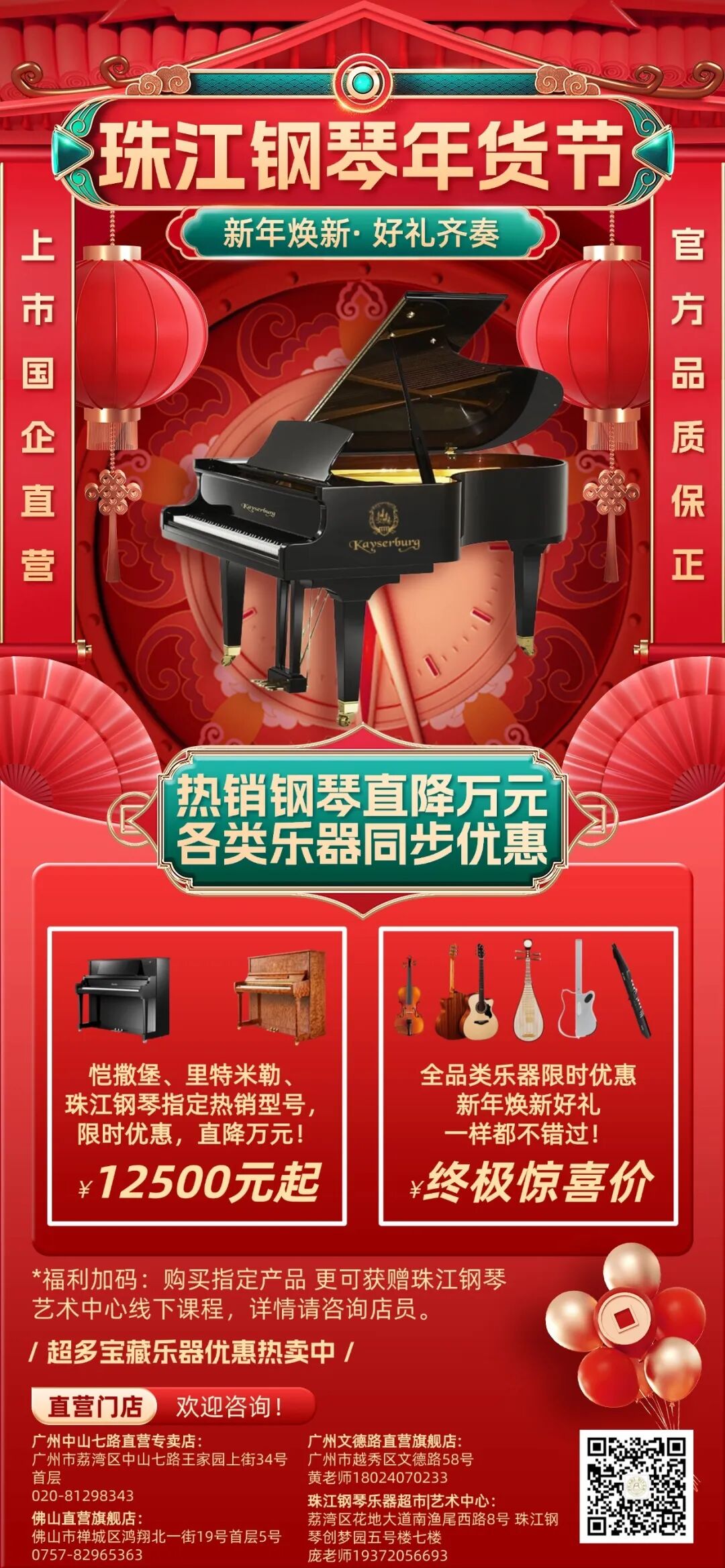 本次活动,珠江钢琴将参加1906科技园分会场,并结合“新年焕新·好礼齐奏”珠江钢琴年货节,推出重磅惠民优惠。恺撒堡、里特米勒、珠江钢琴指定热销型号限时直降万元,特价钢琴12500元起售,购琴更可获赠珠江钢琴艺术中心线下课程,切实让利于民,让市民在新春之际以更实惠的价格迎来音乐生活的焕新启奏。