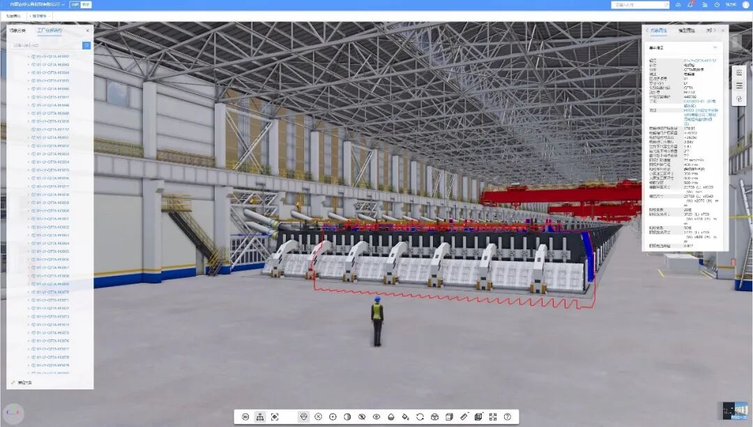在建造环节,AR识图、VR安全培训、无人机进度监控、重点工序可视化模拟等应用已全面部署;在交付方面,全厂及地下综合管网等隐蔽设施的三维模型已完成美化,支持多终端三维漫游与测量;设计信息已全部解析录入静态数据库,数万份建设期资料正按计划结构化整理,目前已基本完成全量数据与模型的集成关联。系统同样预留标准数据接口,为未来接入企业数据平台、开发智慧运维系统奠定基础。