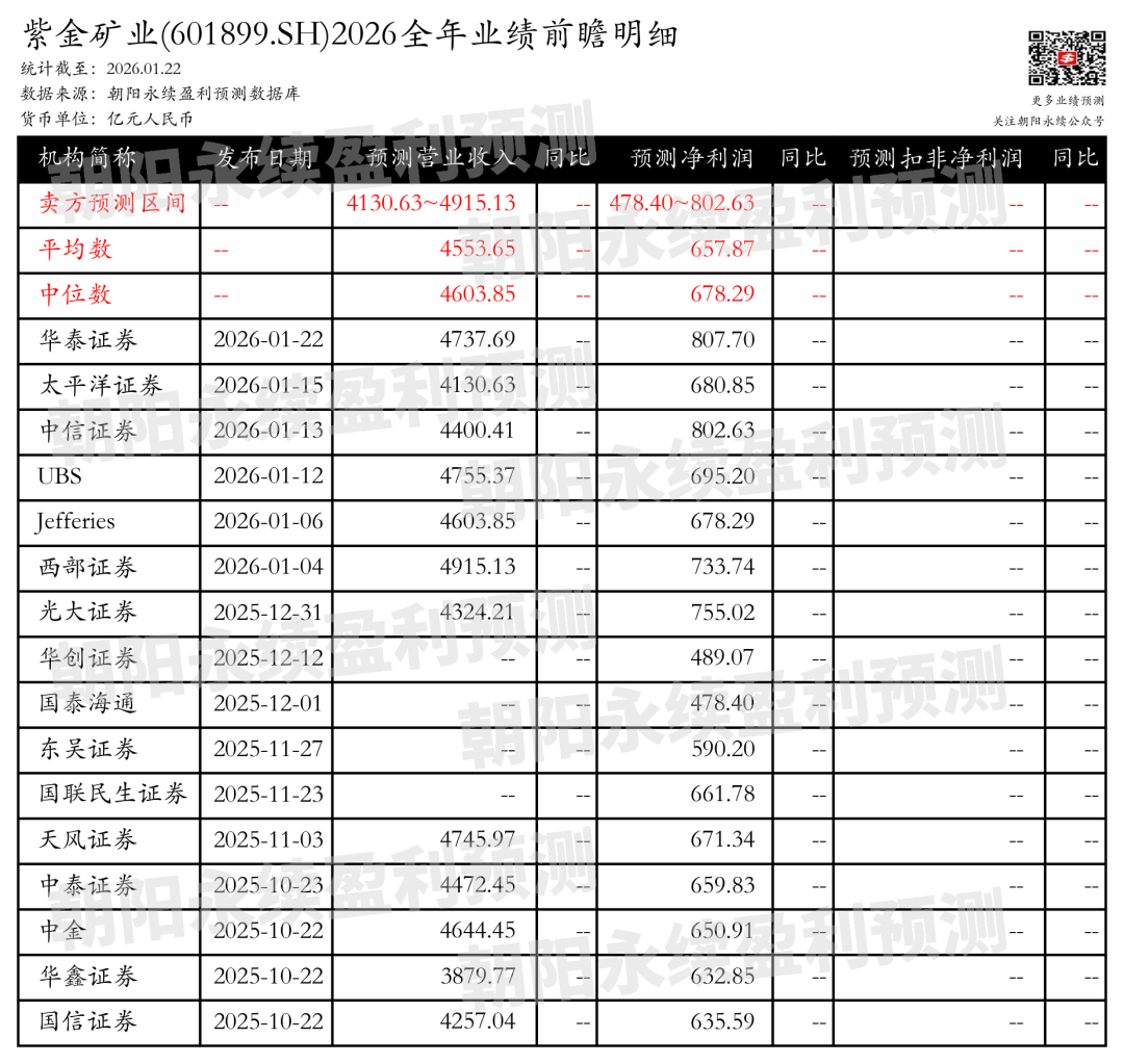 季度业绩前瞻 | 紫金矿业:预测全年营业收入4130.63~4915.13亿元