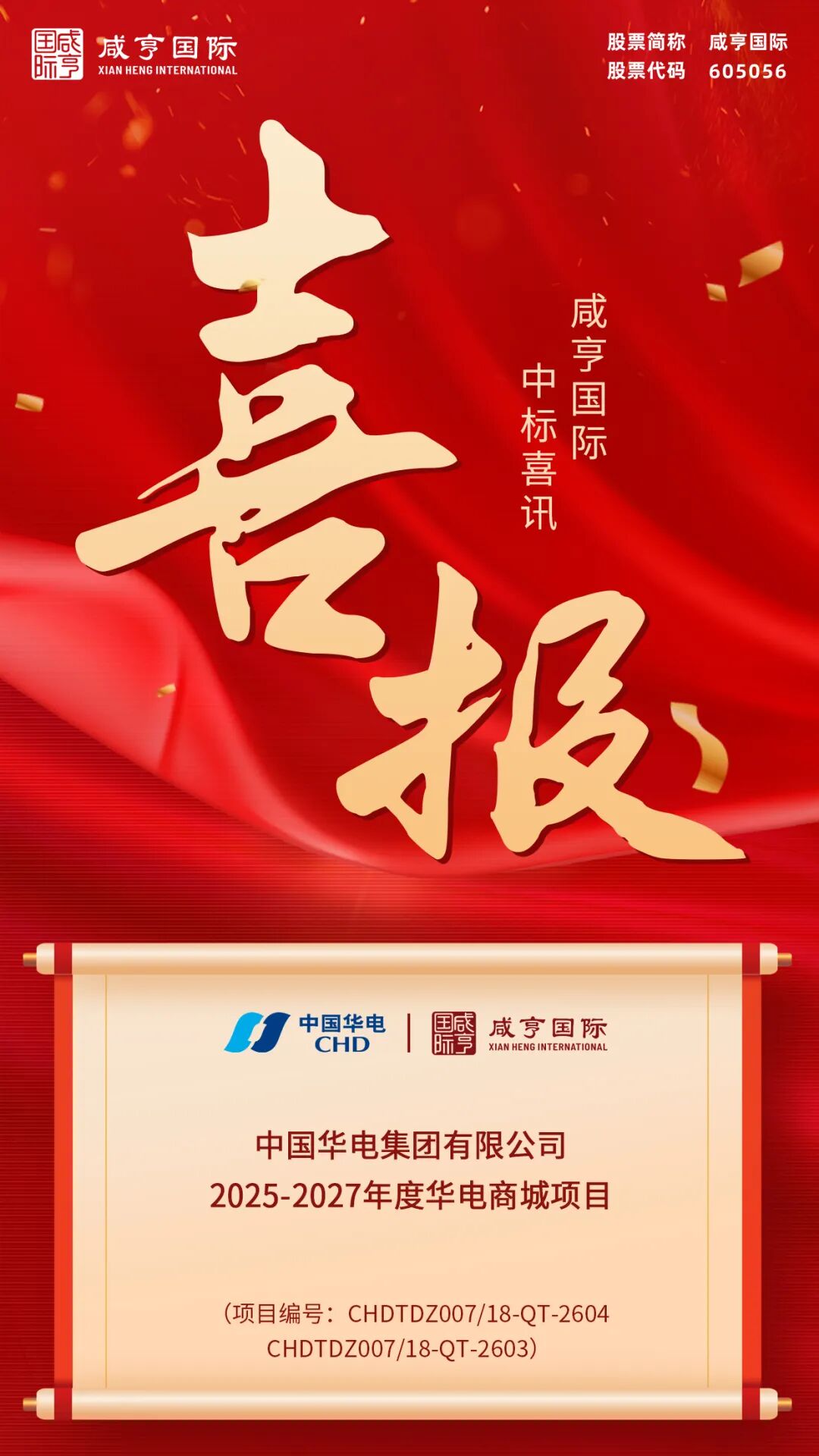 中标喜讯 | 咸亨国际中标中国华电集团有限公司2025-2027年度华电商城项目
