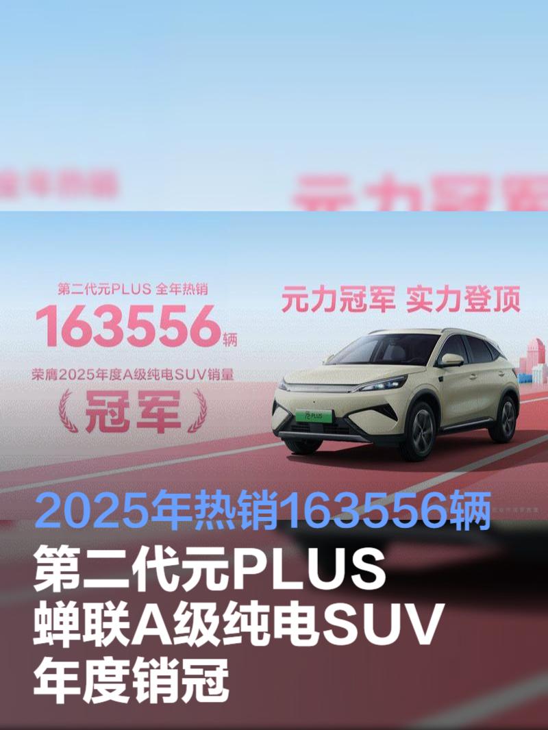 第二代元PLUS 2025年销163556辆 蝉联A级纯电SUV年度销冠