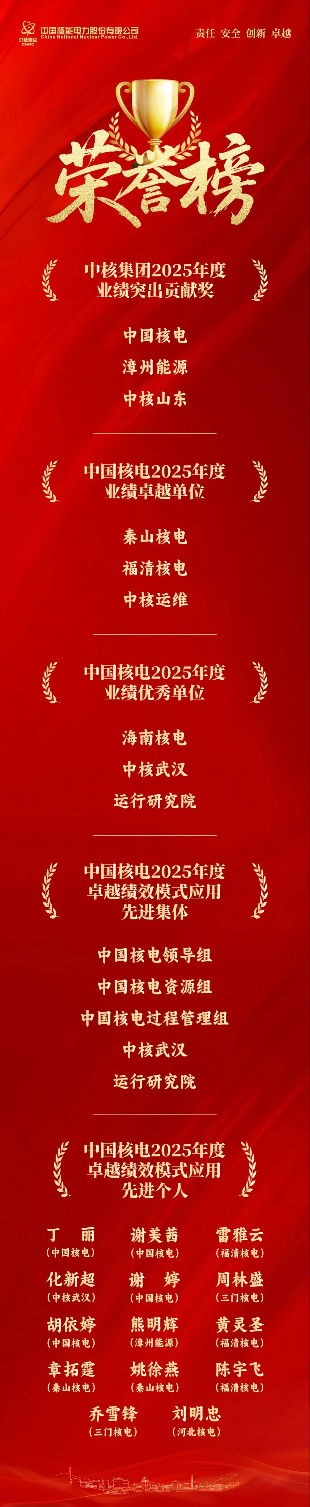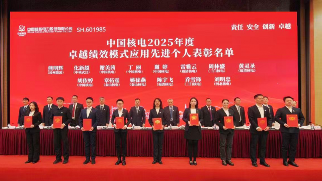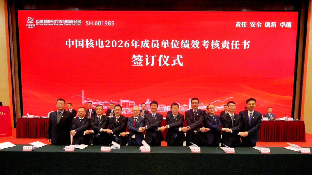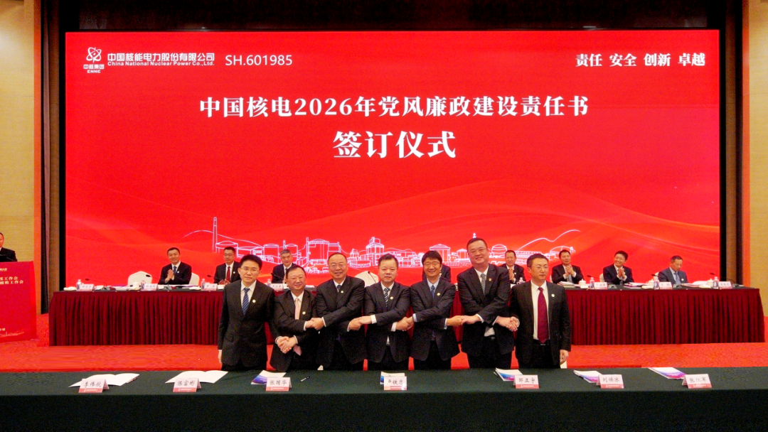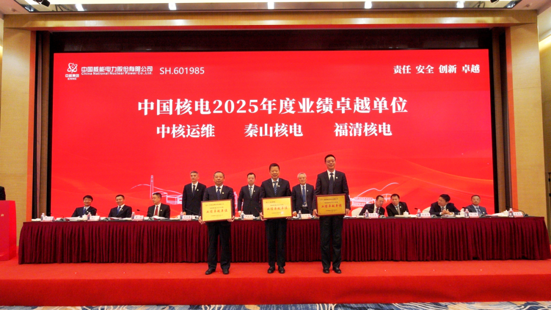会议签署党风廉政建设责任书、年度绩效考核责任书、核能项目前期开发委托协议,并对2025年度中国核电“业绩卓越单位”及“业绩优秀单位”、中国核电卓越绩效模式应用先进集体和个人等进行表彰。