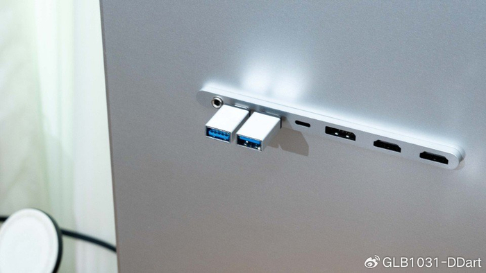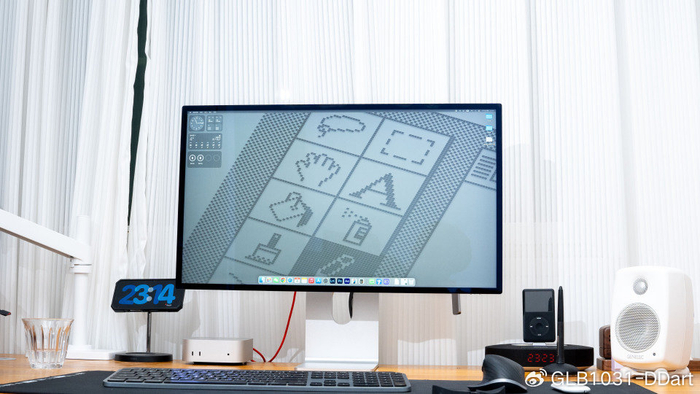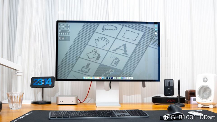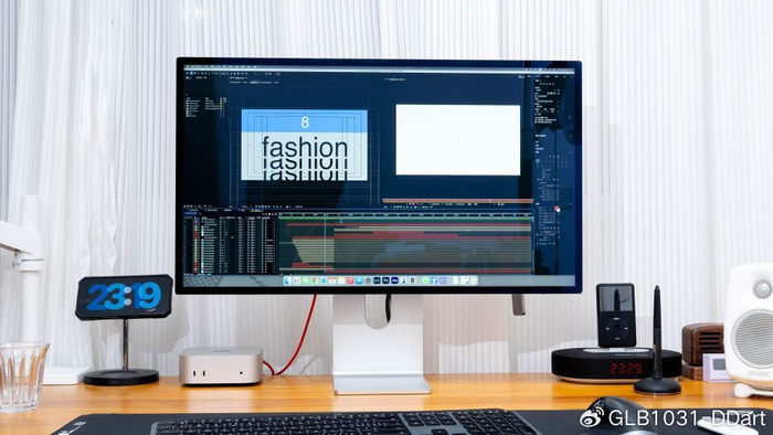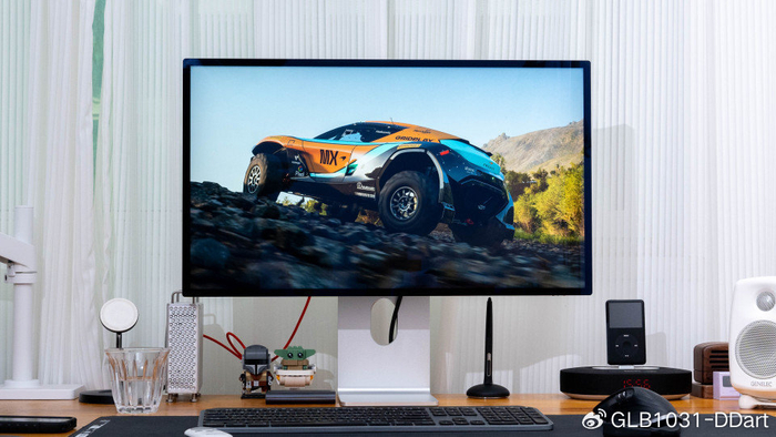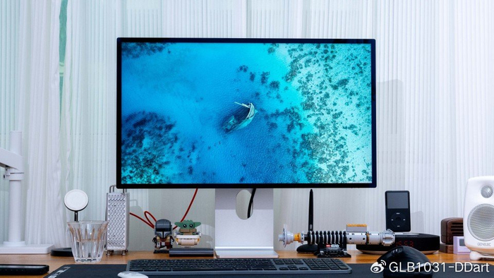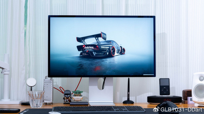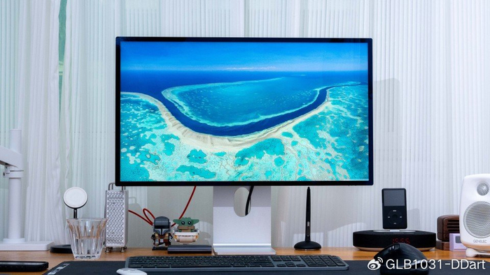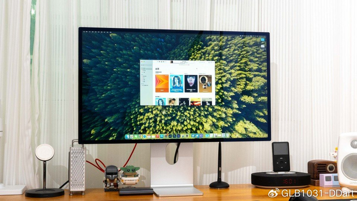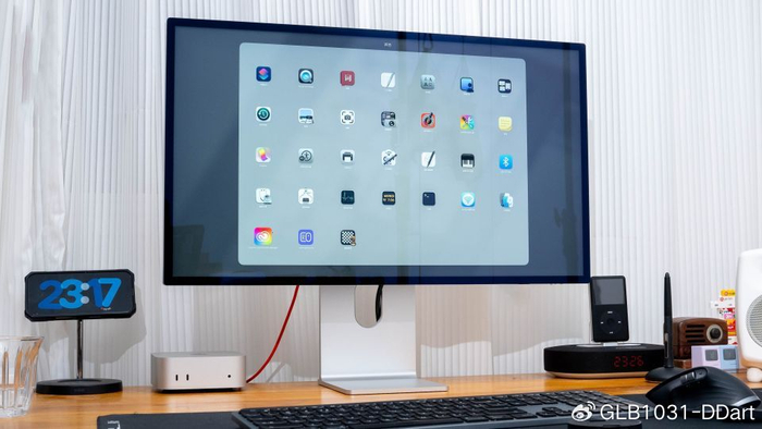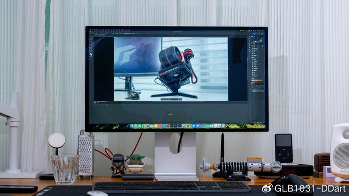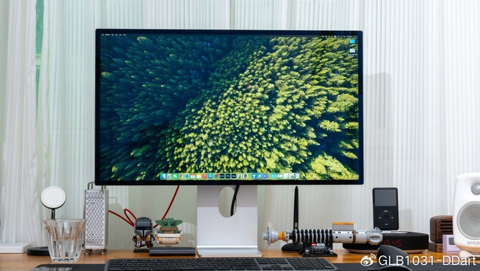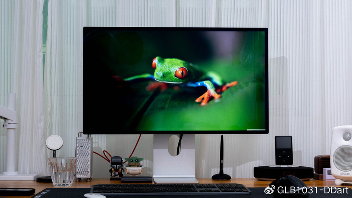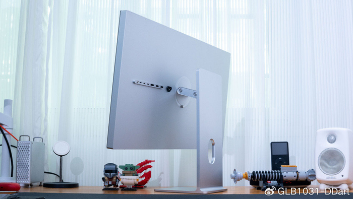 外观上装好支架之后真的就是果味十足,放在桌面上看与苹果原装 Studio Display 真的非常像。