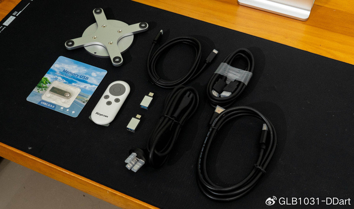 附件方面,除了提供了多向可调的升降支架之外,还附送了支持VESA的壁挂支架。另外像是Type-C、HDMI以及DP线材都一个不少。