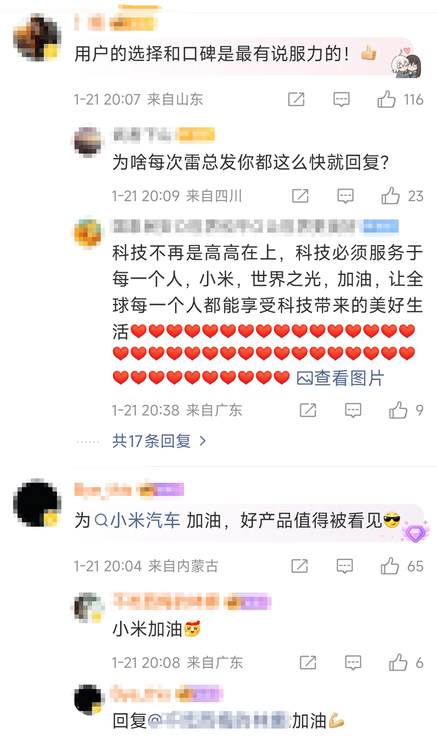 在雷军这条转发微博的评论区里,米粉们纷纷道喜,称“用户的选择和口碑最有说服力”“好产品值得被看见”。