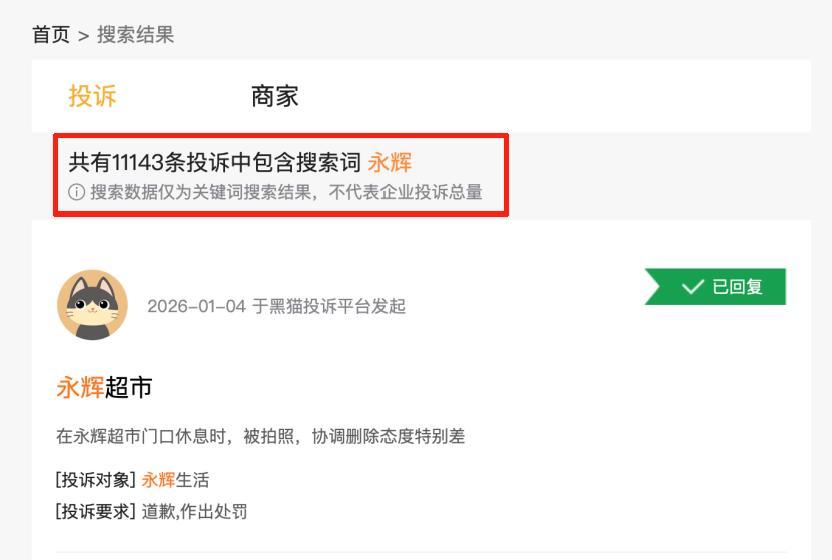截至发稿,在黑猫投诉平台搜索关键词“永辉”,可以获取到超万条结果,其中不乏食品安全、服务体验等方面的投诉。