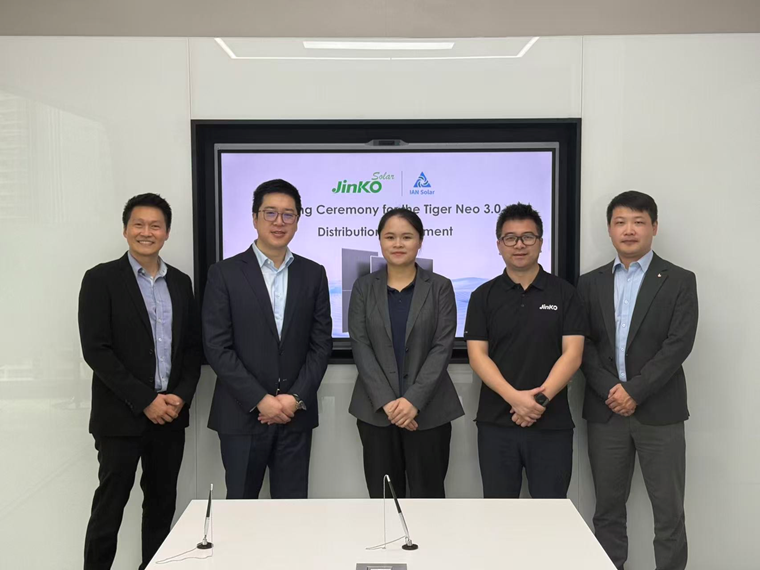 2026年1月21日—晶科能源与泰国UTI Energy、Solar Touch、JTN Energy及IAN Solar四家主要光伏企业达成合作,成功签署近300MW高效飞虎3组件分销协议。此次强强联合,进一步夯实了晶科在泰国光伏市场的领导者地位。