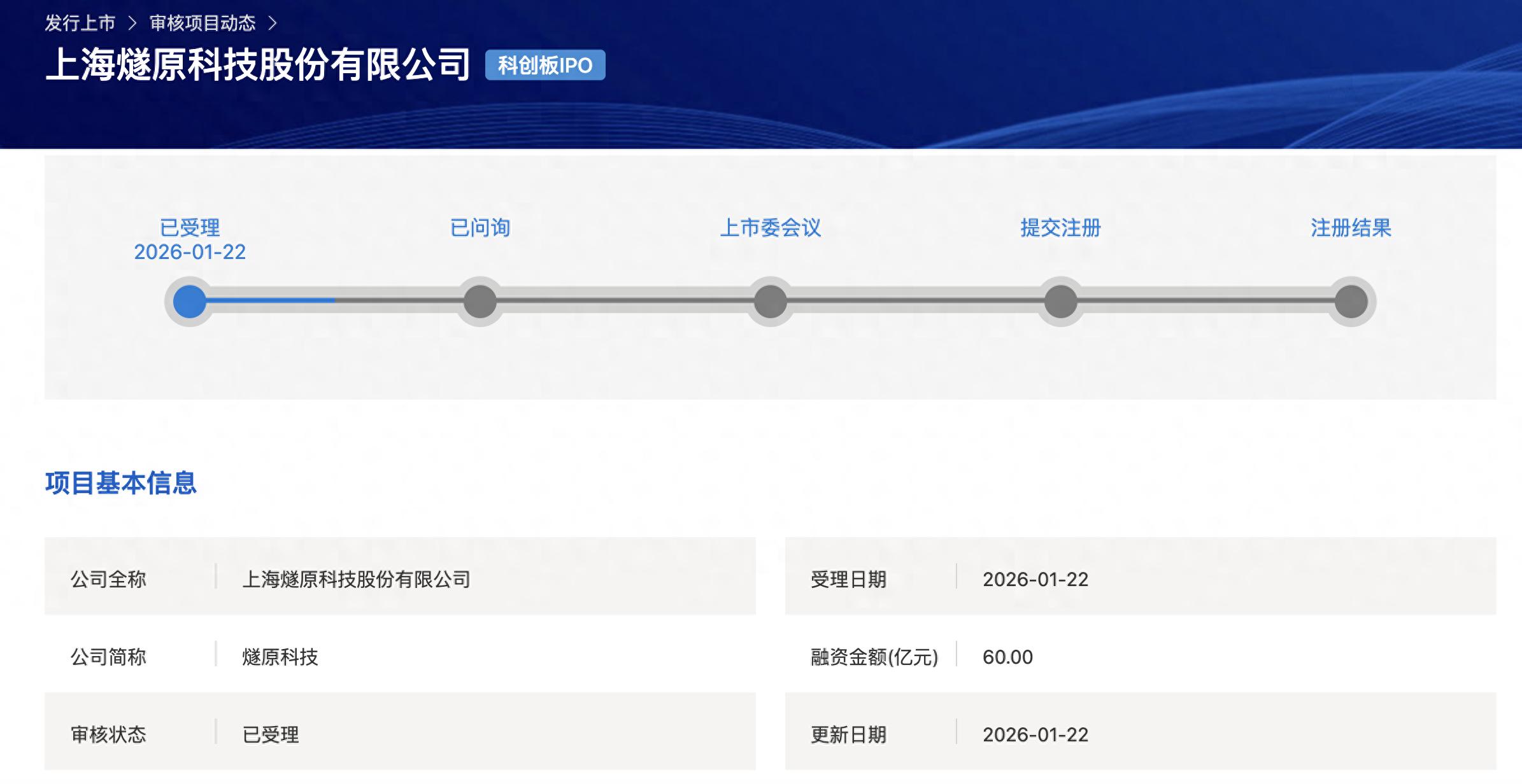 1月22日,国产AI芯片“独角兽”燧原科技的IPO申请获上交所受理,拟募集60亿元,由中信证券担任保荐机构。