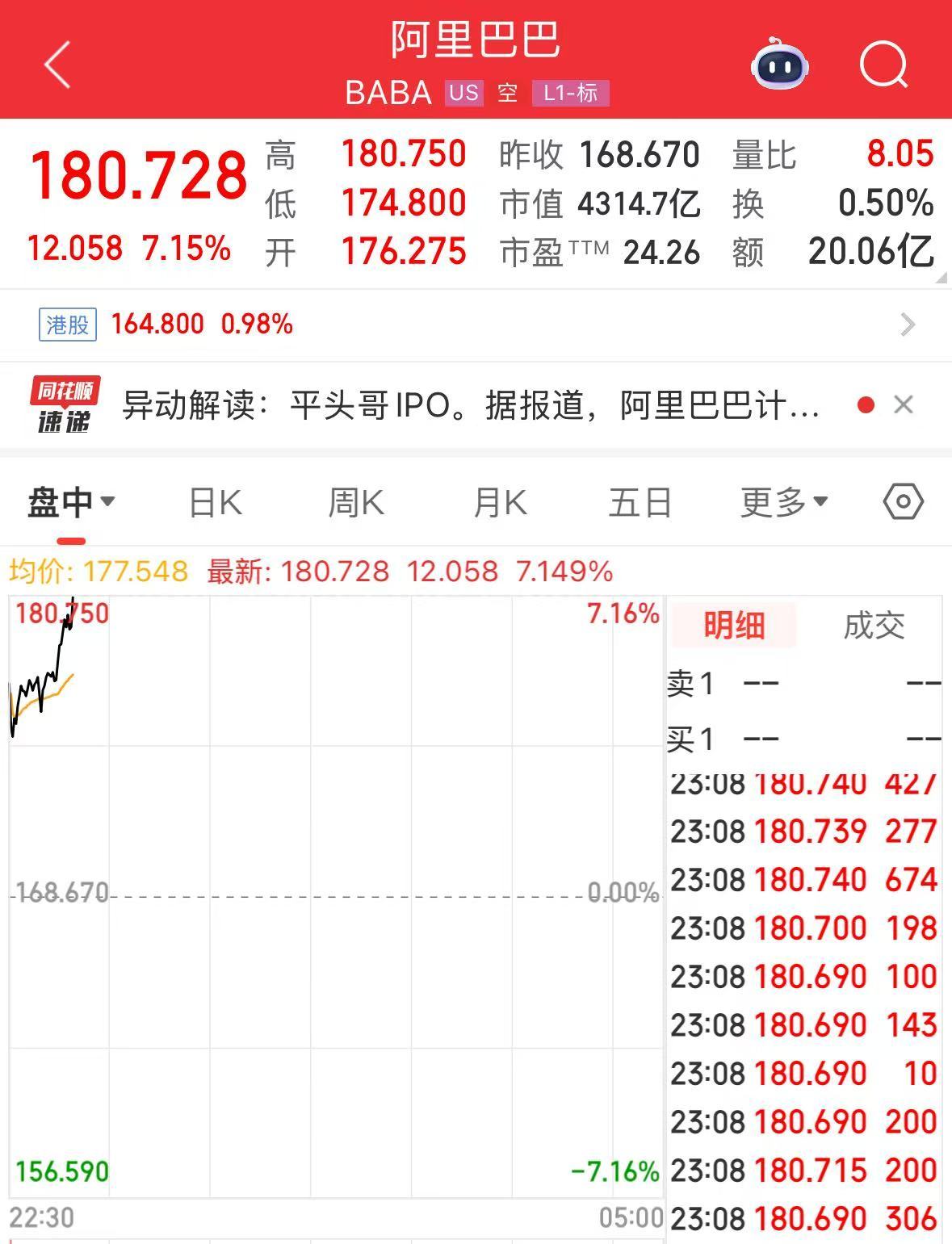 阿里巴巴股价突然直线拉升,市值大涨2000亿元!发生了什么?