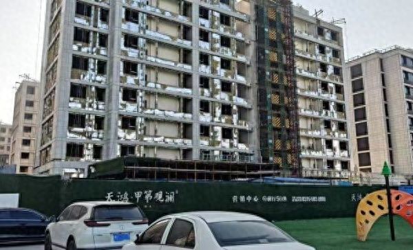 为核实项目现状,记者于1月8日至1月13日之间,多次前往唐山项目实地调查。记者在现场看到,该项目现已由原来的“绿城·桂语江南”更名为“天鸿·甲第观澜”,售楼处仍有销售人员工作。当记者以买家身份跟随销售人员进入施工工地,绿色的环保布在冬日风中簌簌作响,塔吊如同巨人骨架般静止,矗立在几栋仅完成主体结构的灰黑色楼体之间,现场仍有零星工人施工。销售人员指着手中的资料,为记者耐心讲解楼盘价格和区位优势,但未能明确交房时间。
